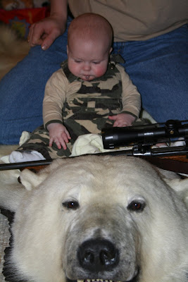 Hunter was happy to see Dad come home and was full of giggles and squeals for him. And it looks like we will be cheering for the Oilers this year: